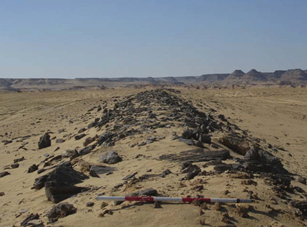 The one-day field trip to Widan el-Faras will start at the terminus of one of the world’s oldest paved quarry roads that connected the basalt quarries with the shores of ancient Lake Moeris at Qasr el-Sagha. After a brief visit to the temple at Qasr el-Sagha and investigation of the road terminus at a quay, the trip will follow the 11 km long road over a series of escarpments to view the range of local materials used in its construction, such as fossilised wood, sandstone and mudstone. A small encampment and enigmatic series of basalt stone circles at the entrance to the quarries will also be visited before ascending the Gebel Qatrani escarpment to view the basalt quarries. If time allows, a visit may also be made the Old Kingdom gypsum quarries at Umm es-Sawan, 20 km north-east of Widan el-Faras, the site of an intensive stone vessel industry.